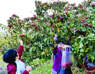 昨日,市民在連云港市開發(fā)區(qū)朝陽生態(tài)園釆摘山楂。初冬時節(jié),朝陽街道層林盡染,到處是一片五彩繽紛的美麗景色,正是市民旅游觀光的好去處。 張兆新 劉加 攝影報道