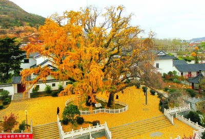 昨日,市開發(fā)區(qū)中云崇善寺原址處的兩棵千年銀杏樹身披“黃金甲”,景致醉人。據(jù)考證,大銀杏樹為魏文帝曹丕稱帝時期所栽,距今約有1790年,樹高30米,樹冠覆蓋面積900平方米,為云臺山古銀杏之王。小銀杏樹為北宋抗金將領(lǐng)張叔夜命部下所栽,距今約890年。 王健民 金山 攝影報道