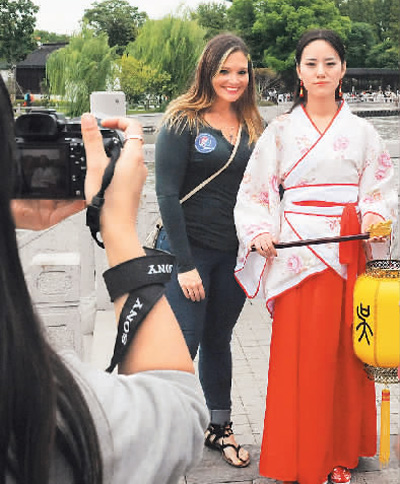 美國游客在蘇州參加中美旅游年活動,感受濃濃的江南風(fēng)情。 |