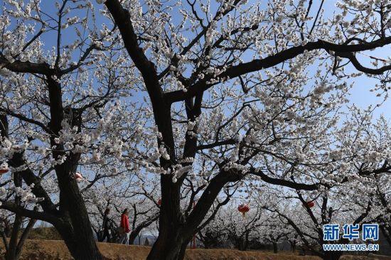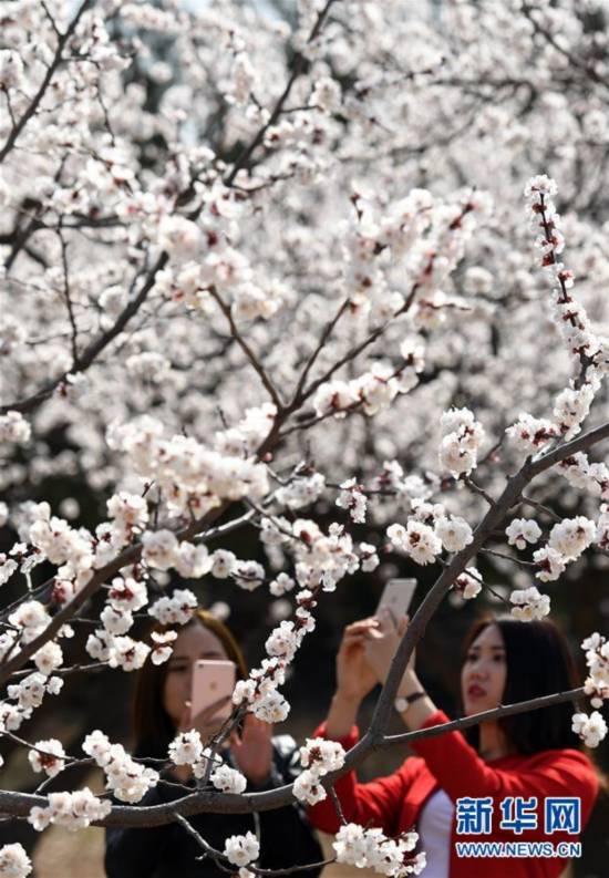 3月26日,游人在陜西省禮泉縣煙霞鎮(zhèn)東坪村觀(guān)賞盛開(kāi)的杏花。陜西省禮泉縣唐昭陵腳下的煙霞鎮(zhèn)積極打造“山底御杏”產(chǎn)業(yè)和品牌,發(fā)展御杏園林。目前,這里的近萬(wàn)畝杏花相繼綻放,成為游人踏青賞花、休閑的好去處。新華社記者陶明攝