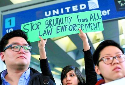 一些芝加哥民眾11日下午聚集在奧黑爾國際機場1號航站樓大廳,抗議美國聯(lián)合航空公司(美聯(lián)航)將一名亞裔乘客強行拖下飛機的惡劣行徑。抗議者手舉“抵制美聯(lián)航”、“亞裔美國人團結(jié)起來反抗警察暴力”、“停止一切來自執(zhí)法機構(gòu)的暴力”等標(biāo)語,表達憤怒。有抗議者表示,美聯(lián)航首席執(zhí)行官奧斯卡·穆尼奧斯應(yīng)該引咎辭職。