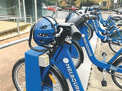 王杰妮在體驗(yàn)時(shí)發(fā)現(xiàn):澳大利亞的公共自行車(chē)不僅有停靠塢,而且每輛自行車(chē)都配備了安全帽。