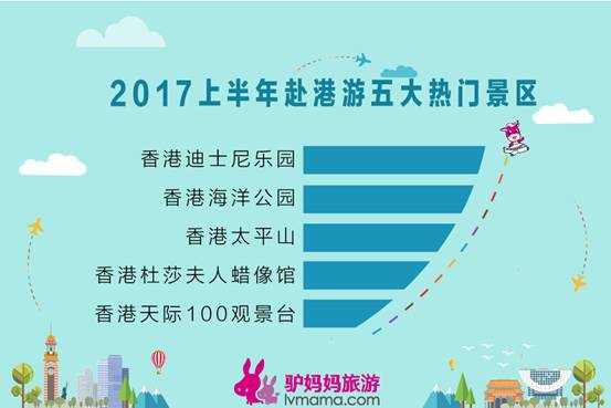 其中,香港迪士尼樂園、香港海洋公園、香港太平山、香港杜莎夫人蠟像館、香港天際100觀景臺位居赴港游五大熱門景區(qū)。兩大樂園成為赴港游“主角”,數(shù)據(jù)顯示,從2015年上半年到2017年上半年,從驢媽媽旅游網(wǎng)平臺預訂香港迪士尼游玩的人次同比上漲了6倍,預訂香港海洋公園游玩的人次同比上漲了8倍。