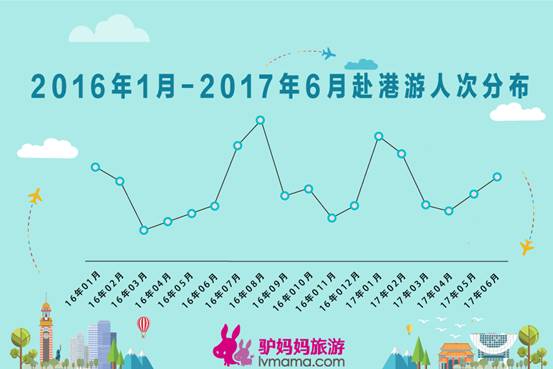 驢媽媽旅游網(wǎng)數(shù)據(jù)顯示,今年上半年,女性游客仍是赴港游的消費主力,占比高達57%;男性游客占比,近3年來顯著提升近10個百分點;2-12歲兒童的訂單占比,已經(jīng)從2015年的14%上漲至2017年的22%,說明越來越多的家庭游客青睞赴港旅游。從出游時間來看,每年的春節(jié)(1-2月)、暑期(7-8月)是赴港旅游高峰期。