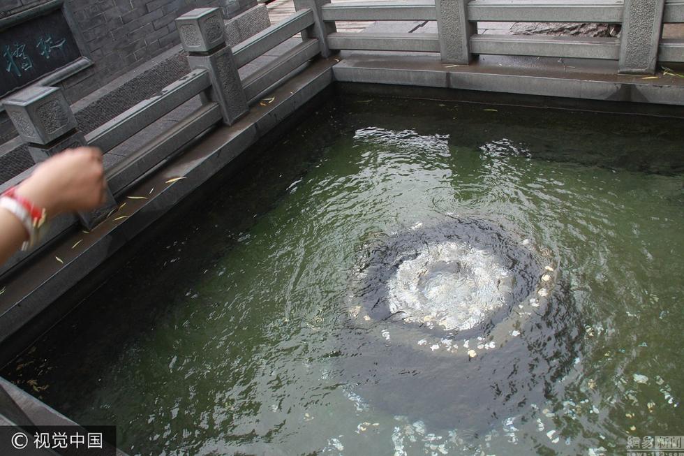 2017年7月5日,在濟(jì)南趵突泉景區(qū),七十二名泉之漱玉泉內(nèi)游客投錢幣堆積在泉池內(nèi),原本游客觀看的泉眼成了“錢眼”。趙亮/視覺中國