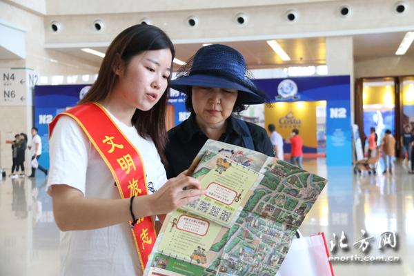 活動(dòng)現(xiàn)場(chǎng),文明旅游志愿者積極做好文明旅游的宣傳引導(dǎo)工作,通過(guò)講解文明出行禮儀并贈(zèng)送文明旅游宣傳品,強(qiáng)化市民和游客對(duì)文明旅游的關(guān)注,吸引了眾多市民、游客和參展商的駐足觀看。在現(xiàn)場(chǎng)游客王阿姨看來(lái),文明旅游的宣傳現(xiàn)身2017中國(guó)旅游產(chǎn)業(yè)博覽會(huì),主題特色很明確,影響力和宣傳面也很廣,并希望通過(guò)這種高效直觀的方式將文明旅游的新風(fēng)尚真正傳播出去,傳播到每個(gè)津城市民和來(lái)津游客的心里。