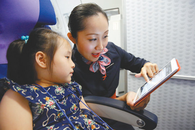 乘務(wù)員利用機上無線網(wǎng)絡(luò)幫助無陪小旅客與家人空地聯(lián)絡(luò)。