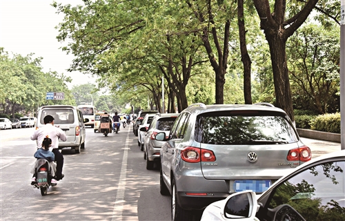 4月30日,彭祖園熙熙攘攘,人頭攢動(dòng)。動(dòng)物園、福壽廣場的長廊、座椅上,到處都是游園的市民。因?yàn)樘鞖獗容^熱,個(gè)別市民索性把褲腿擼起來,還有的人躺臥在座椅上,或者把腿蹺在椅背上,很不雅觀。另外,由于游客比較多,人流集中的廣場、長廊,地上有不少廢棄的紙,開車來的市民見停車場已滿,索性把車停到馬路上的慢車道上。