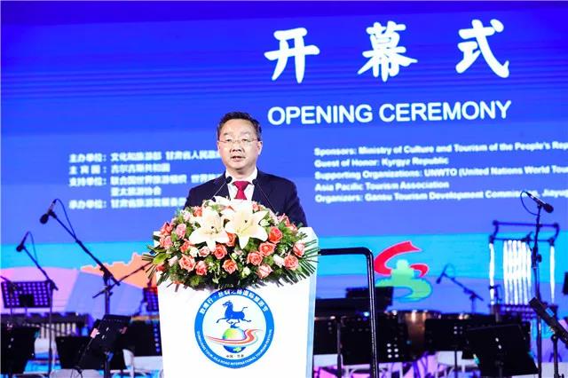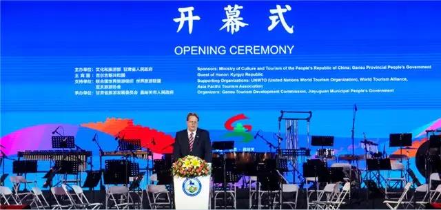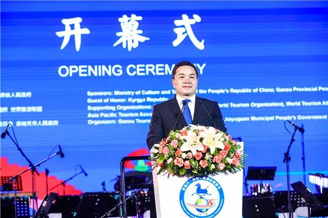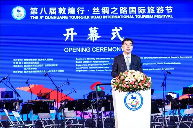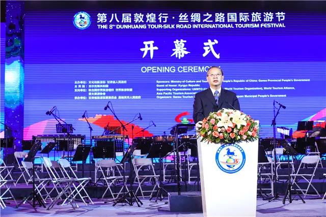 6月19日,由文化和旅游部、甘肅省人民政府共同主辦,吉爾吉斯斯坦為主賓國,世界旅游組織、世界旅游聯(lián)盟、亞太旅游協(xié)會(huì)為支持單位的第八屆敦煌行·絲綢之路國際旅游節(jié)在甘肅省嘉峪關(guān)市隆重開幕。甘肅省委書記、省人大常委會(huì)主任林鐸出席并宣布旅游節(jié)開幕。文化和旅游部黨組成員杜江,省委副書記、省長唐仁健,本屆旅游節(jié)主賓國吉爾吉斯斯坦政府特別代表、國家議會(huì)旅游委員會(huì)主席尤索諾夫·阿卜杜瑪吉特,世界旅游組織新聞部主任馬賽洛·瑞斯,亞太旅游協(xié)會(huì)基金會(huì)主席彼得·西蒙分別致辭。甘肅省委常委、常務(wù)副省長宋亮主持政務(wù)儀式。