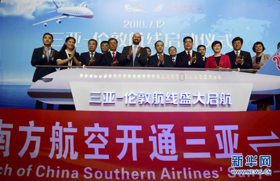 7月12日,三亞至倫敦直飛航線啟航儀式在海南三亞鳳凰國際機場舉行。當(dāng)日,隨著CZ651航班從海南三亞起飛飛往倫敦,中國民航開通的首條由海南直飛歐洲的定期航線實現(xiàn)首航。這是海南全島建設(shè)自由貿(mào)易試驗區(qū),逐步探索、穩(wěn)步推進(jìn)中國特色自由貿(mào)易港建設(shè)以來,開通的第一條洲際航線。新華社發(fā)(沙曉峰 攝)