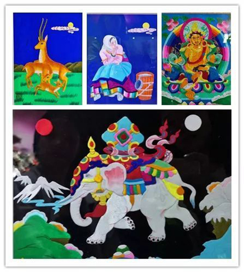 宗喀唐卡起源于湟中縣,其表現(xiàn)題材集中為青藏高原藏族的歷史、政治、宗教文化和社會(huì)生活等領(lǐng)域。其制作顏料以金銀、珍珠、珊瑚等珍貴礦物石和藏紅花、藍(lán)靛等植物為顏料。