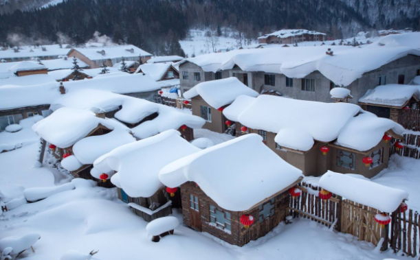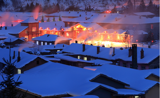 現(xiàn)在正值11月中旬,雖然廣東地區(qū)還是穿著短袖,但是出發(fā)前往雙峰林場已經(jīng)是冰雪大世界,雪花隨風(fēng)疊落在每個角落,“棉被雪”也是雪鄉(xiāng)特色之一。白日里景色潔白無暇,冰封雪凍之際萬物分外靜謐,而天色漸暗之時,家家戶戶亮起的紅燈和紅燈籠映襯著這里的皚皚白雪,白茫茫雪景中透著溫馨的火光,使得這里的世界也透著一絲煙火氣息。