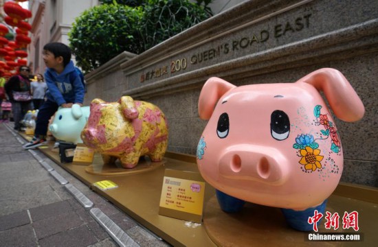 1月27日,新春臨近,由香港存款保障委員會籌劃的“存得安心·‘豬’事大吉賀新歲”藝術(shù)豬巡回展覽在灣仔利東街展出。