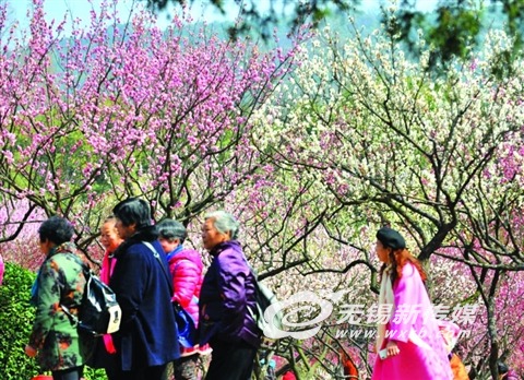 昨天,錫城許多婦女和游客來(lái)到梅花盛開(kāi)的梅園,感受明媚陽(yáng)光。陳大春 攝