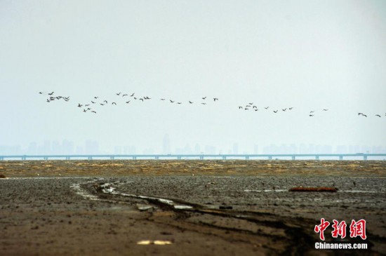 山東青島候鳥(niǎo)遷徙過(guò)境膠州灣 成壯觀過(guò)境潮