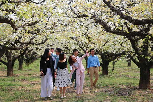 走進(jìn)梨花之都大沙河,漫步在梨園花海,一撥又一撥的游客與梨花親近,有的全家出動(dòng),或拿著相機(jī)、手機(jī)爭(zhēng)相與梨花合影;或三五成群漫步花海,或組團(tuán)浩浩蕩蕩,暢談或敘舊甚歡。