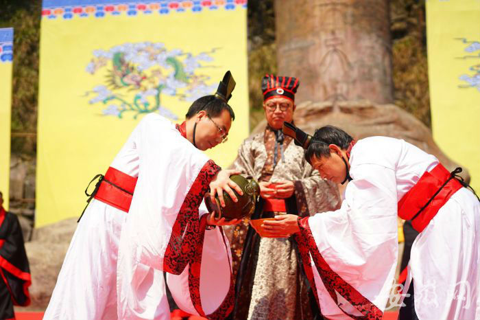4月5日上午9:48分,祭祀大典正式開始。祭祀大典采用最傳統(tǒng)的禮祭、樂祭、舞祭、俗祭、民祭,延續(xù)其千年以來的傳統(tǒng),旨在將其打造成安徽文化領(lǐng)域的一件盛事。共有1500余人參加公祭典禮。