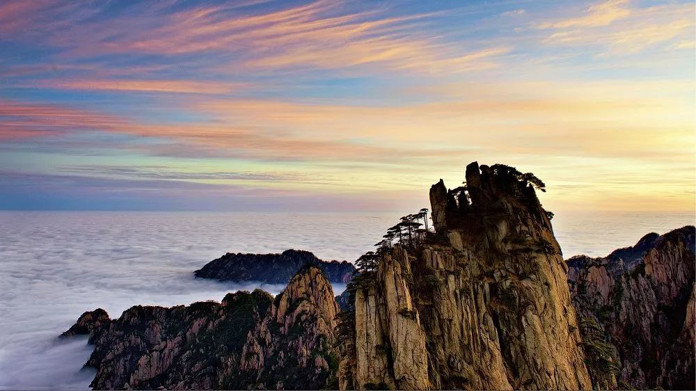 黃山被譽(yù)為“天下第一奇山”,以奇松、怪石、云海、溫泉、冬雪“五絕”著稱(chēng),是全球首個(gè)集世界文化與自然遺產(chǎn)、世界地質(zhì)公園、世界生物圈保護(hù)區(qū)于一身的風(fēng)景名勝區(qū),與長(zhǎng)江、長(zhǎng)城、黃河同為中華民族的象征。
