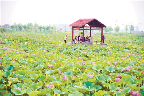 走進(jìn)柳泉鎮(zhèn)北村村,村頭的萬(wàn)荷園,讓來(lái)此游覽的人腳步不由地慢下來(lái),再慢下來(lái)。