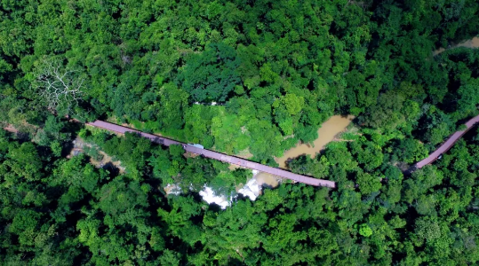 穿過(guò)橫跨在原始森林中的高空棧道,