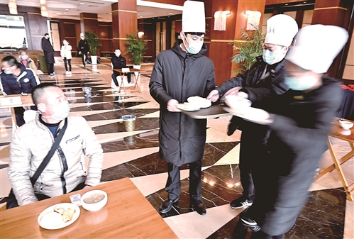 ◎文/徐報(bào)融媒記者 鄭微 圖/徐報(bào)融媒記者 白雪 劉冰 本周,我市發(fā)出推動(dòng)餐飲行業(yè)有序恢復(fù)堂食的通告后,各家餐企積極響應(yīng)。本周六是我市餐飲企業(yè)恢復(fù)堂食后的第一個(gè)周末,各家餐企堂食防疫措施做得怎么樣?進(jìn)店用餐需要哪些流程?3月14日,記者走訪了主城區(qū)部分餐飲企業(yè),發(fā)現(xiàn)廣大餐飲企業(yè)積極按照相關(guān)規(guī)定,查綠碼、測(cè)體溫、桌椅保持間隔、公勺公筷,規(guī)范有序。 開元名都大酒店:出示健康碼測(cè)量體溫后方可就餐 14日一早,在開元名都大酒店開元序廳,推出堂食加戶外用餐雙選的就餐模式。無論是居住在酒店的客人還是專程來吃早餐的市民,都可以自行選擇在廳內(nèi)或室外就餐。當(dāng)天,酒店提供的早餐是該酒店的特色——羊肉煎包、辣湯,以及羊肉湯、壯饃。 徐州開元名都大酒店人力資源部總監(jiān)司純告訴記者,選擇在開元序廳提供早餐服務(wù),主要是考慮這個(gè)廳比較寬敞,南北通風(fēng),能為食客提供安全的就餐環(huán)境。同時(shí),在廳外也擺放了8張桌子,“是因?yàn)橛蓄櫩椭鲃?dòng)提出,想到室外吃早餐。今天天氣不錯(cuò),溫度也不算低,我們就把幾張桌子擺到了室外。”司純說,無論是廳內(nèi)還是廳外,擺設(shè)的桌子與桌子間隔均在1米以上,每位客人用餐后,服務(wù)人員立即對(duì)桌椅進(jìn)行消毒,才給下一位客人就餐。同時(shí),顧客進(jìn)店需要出示健康碼、工作人員予以測(cè)量體溫,方可就餐,謝絕未帶口罩的客人入內(nèi)。 據(jù)介紹,酒店還為客人提供了基本的防疫物品如口罩、免洗洗手液、酒精等;每日室內(nèi)消殺不少于兩次,并公示消毒情況。徐州市文化廣電和旅游局市場(chǎng)管理處處長(zhǎng)薛桂松表示,開元名都大酒店按照17號(hào)通告的要求,做好了餐企恢復(fù)堂食的防控工作;人氣也很旺,一早上大廳幾乎都坐滿了,說明市民有這種需求。這種好的做法值得向全市的餐飲企業(yè)進(jìn)行推廣。該酒店總經(jīng)理鄧超告訴記者,隨著我市餐企堂食的陸續(xù)恢復(fù),自3月14日晚餐起,酒店自助餐也已全面恢復(fù)。 云龍萬達(dá)川鍋一號(hào):不定時(shí)提醒,鼓勵(lì)用公筷公勺 中午,記者來到云龍萬達(dá),發(fā)現(xiàn)這里一部分餐飲企業(yè)還未恢復(fù)堂食,但基本都有員工在店內(nèi)做恢復(fù)堂食前的準(zhǔn)備,包括打掃門店衛(wèi)生、消殺,為餐具消毒等等。 “歡迎光臨,入店請(qǐng)出示您的彭城碼。” “請(qǐng)到這邊量一下體溫,登記下個(gè)人信息。” 中午12點(diǎn),在云龍萬達(dá)川鍋一號(hào),這是該火鍋店恢復(fù)堂食后的第一餐。記者正巧遇到一桌前來就餐的食客。在確認(rèn)這4位食客都擁有“綠碼”,體溫均正常之后,戴著口罩、防護(hù)帽的服務(wù)人員,將他們引至餐位就餐。 按店內(nèi)指引,食客同向而坐,每桌不超過4人,兩桌之間要間隔一桌,鼓勵(lì)使用公筷公勺,有工作人員在全場(chǎng)不定時(shí)巡邏提醒……記者看到防疫部門的官方規(guī)定,在店內(nèi)都一一體現(xiàn)。 據(jù)徐州萬達(dá)川鍋一號(hào)店長(zhǎng)付婷婷介紹,商家為了保證餐食安全,提前對(duì)前廳后廚施行了全面消殺,對(duì)廚房死角、冰柜進(jìn)行擦拭、消毒等;要求每一位廚師、服務(wù)員在上崗前測(cè)量體溫并做好登記;防護(hù)物資保證儲(chǔ)備充足;對(duì)公共區(qū)域的餐具桌椅進(jìn)行一客一消毒,每桌桌面都擺放了免洗洗手液等等。“我們的食材都是當(dāng)天一早采購,或從總部配送的,保證了食材的新鮮。”付婷婷說。 釣魚島珠山漁村:餐前餐后消毒,減少生鮮菜品供應(yīng) 在云龍湖附近的釣魚島珠山漁村,記者看到原本可以容納16人的餐桌,餐椅間的距離擴(kuò)大到了一米左右,只能容納8人就餐。釣魚島珠山漁村店長(zhǎng)郭莉告訴記者,為減少人員聚集,酒店目前僅開放了部分包間,并且將每桌用餐人數(shù)減少一半,用餐時(shí)要使用公筷、公勺,服務(wù)員分別在用餐前后對(duì)包間進(jìn)行消毒。每一位堂食客人要出示“綠碼”,測(cè)量體溫和消毒才能進(jìn)店。同時(shí),為了做好防控工作,酒店減少了刺身等生鮮類菜品的供應(yīng),主要供應(yīng)高溫烹飪的菜品。從3月13日恢復(fù)堂食首日,就接到不少詢問和預(yù)約電話。郭莉說,14日接到了6桌晚餐預(yù)訂,可以看出,消費(fèi)者對(duì)堂食消費(fèi)還是有需求的。 |