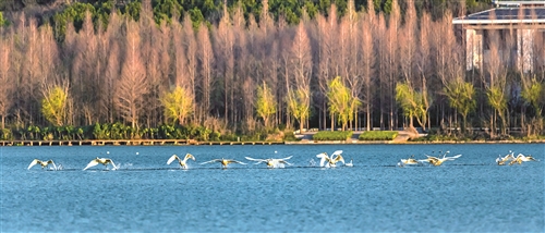 隨著天氣轉(zhuǎn)暖,冬季在云龍湖成群結(jié)隊出現(xiàn)的銀鷗等冬候鳥開始北遷回家,至3月20日中午,云龍湖還有300只銀鷗。徐報融媒記者 劉濱 通訊員 班宇輝 攝