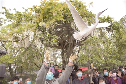 放飛白鷺。 徐報(bào)融媒記者 秦媛 攝