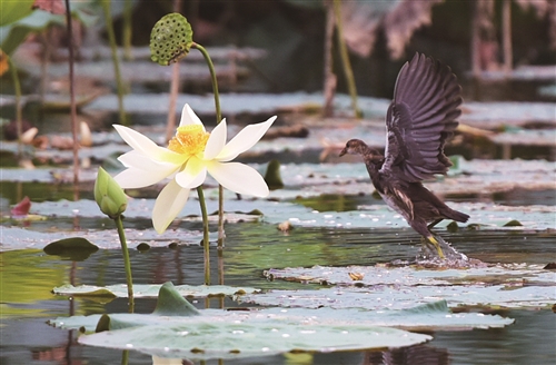 初秋時節(jié),公園里的各種景物陸續(xù)披上了彩裝,逐漸呈現(xiàn)出斑斕色彩,紅的似火,黃的似金,綠的似翠,層層疊疊,移步易景,野鴨、蒼鷺等精靈嬉戲其間,構(gòu)成了一幅幅如詩如畫的秋韻美景。 徐報(bào)融媒記者 孫井賢 攝 |