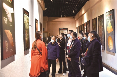 專家學(xué)者在漢文化景區(qū)參觀考察。