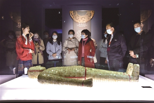 專家學(xué)者在徐州博物館參觀精美絕倫的金縷玉衣。