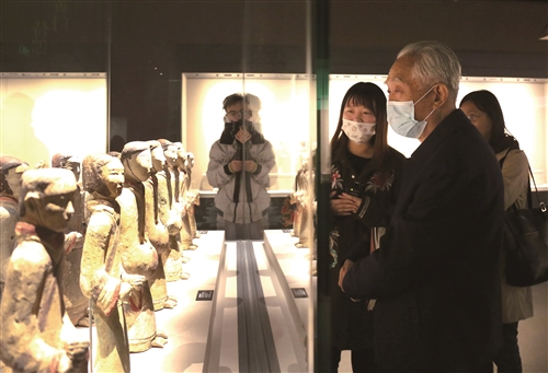 10月16日下午,剛剛抵達(dá)徐州的閻崇年主動提出想到徐州博物館看看,在飽覽了徐州博物館的“古彭之寶”“金戈鐵馬”“天工漢玉”“俑偶華彩”等展廳后,閻崇年先生顯得很興奮,“太震撼了,博物館建筑輝煌,館藏內(nèi)容豐富,有如此成規(guī)模、成系列的漢代文物珍藏,我就用兩個字形容——贊嘆。來到徐州后,更增添了我的文化自信。”