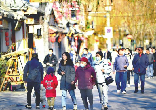 元旦假日,市民游客結(jié)伴在濟(jì)南明府城片區(qū)游玩。(崔健攝)