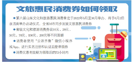 今天(5月30日)下午,記者從省政府新聞辦召開的新聞發(fā)布會上獲悉,第六屆山東文化和旅游惠民消費(fèi)季定于2022年5月至10月舉辦,將于6月2日在濟(jì)南舉辦啟動儀式,全省16市同步發(fā)放文旅惠民消費(fèi)券。