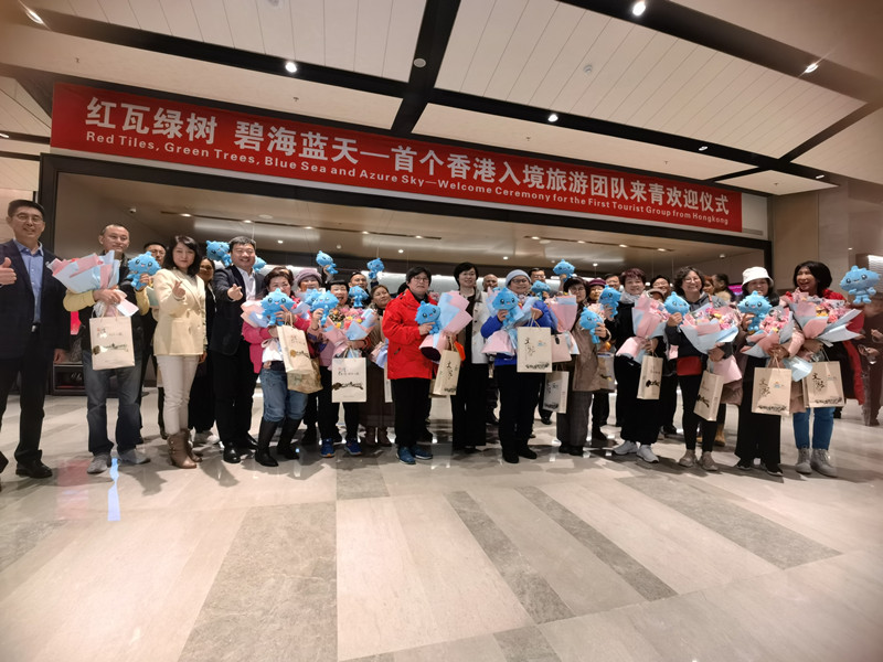 人民網(wǎng)青島2月12日電 (劉穎婕)2月12日,青島市迎來了山東首個入境旅游團隊,23名香港游客于當日下午抵達青島,開啟為期5天的旅程。
