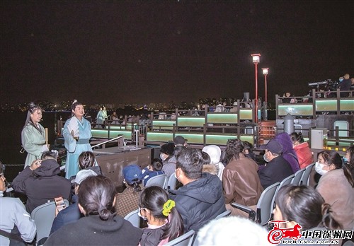 在詩意的蘇軾文化山水長卷中,受邀嘉賓和媒體記者分乘兩船,進行了一場穿越時空的水上行浸式夜游體驗。