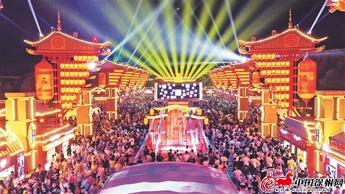 游中有吃、吃中有購、購中有樂、樂中有情。“徐州之夜”街區(qū)有近百家街區(qū)商鋪,15個行為藝術(shù)演藝舞臺,近50名專業(yè)演員,190個大型防水光束燈、100個大型LED燈、36個大型飄影燈。