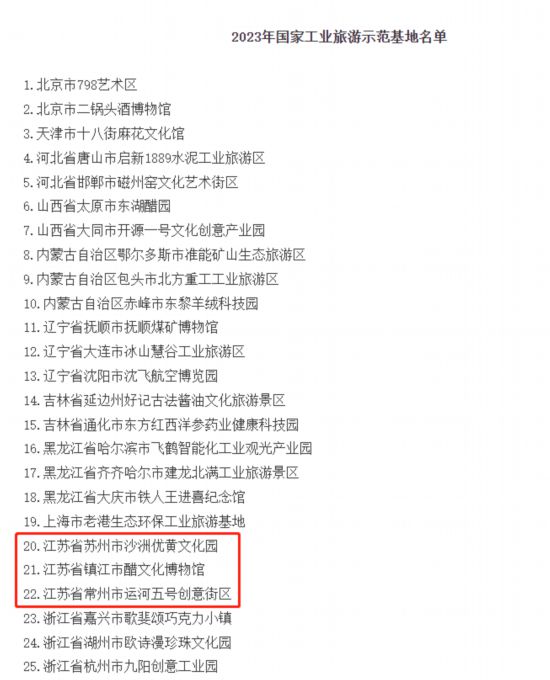 日前,經(jīng)地方文旅行政部門推薦,文旅部組織專家評審并公示后,2023年國家工業(yè)旅游示范基地名單公布,69家單位入選,江蘇3家單位上榜。