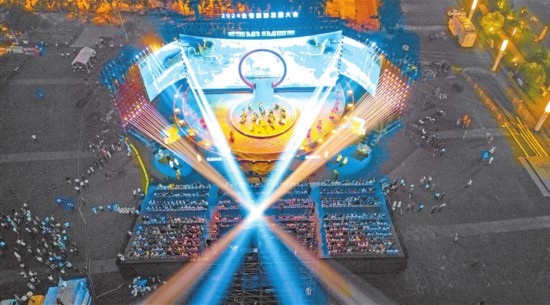 6月16日晚,如意湖畔,燈火璀璨。在2024“行走河南·讀懂中國”文化旅游季啟動儀式上,一場穿越古今的視覺盛宴正在上演。 本報記者 聶冬晗 攝