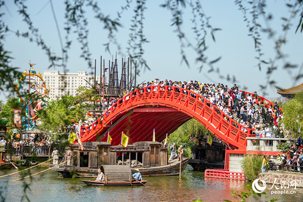 清明上河園景區(qū)游人如織。人民網(wǎng)記者 尚明楨攝