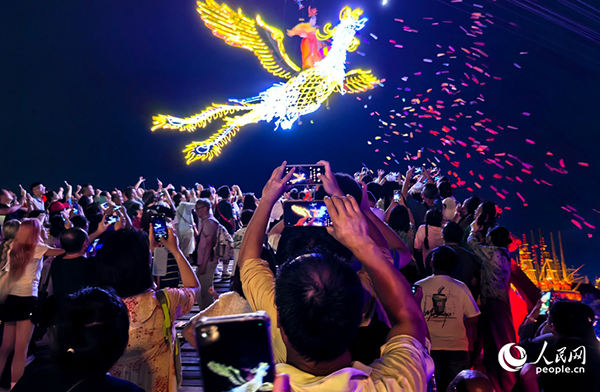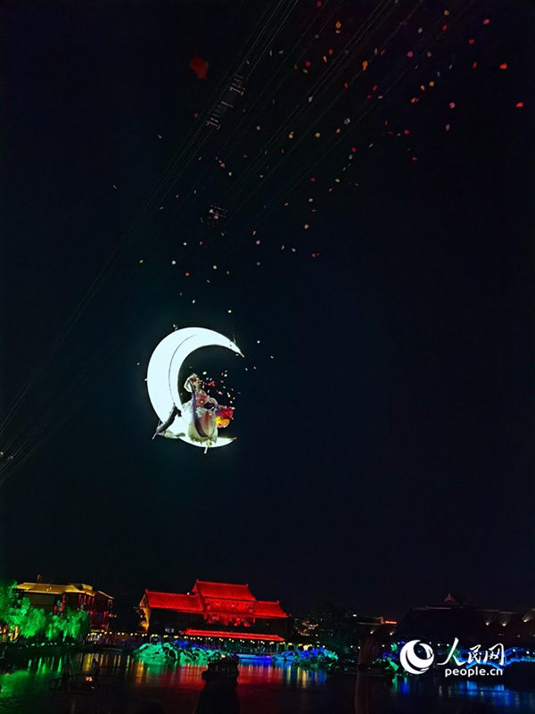 清明上河園景區(qū),月影霓裳飛天秀表演如夢如幻。人民網(wǎng)記者 尚明楨攝