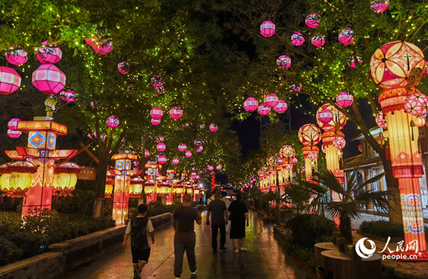 清明上河園景區(qū)燈影霓裳。人民網(wǎng)記者 尚明楨攝