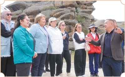 8月,哈薩克斯坦的婦女代表團(tuán)來(lái)到阿勒泰地區(qū),參訪(fǎng)吉木乃縣草原石城景區(qū)。