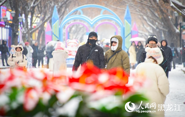 哈爾濱中央大街人流如織(資料圖)。人民網(wǎng)記者 蘇靖剛攝