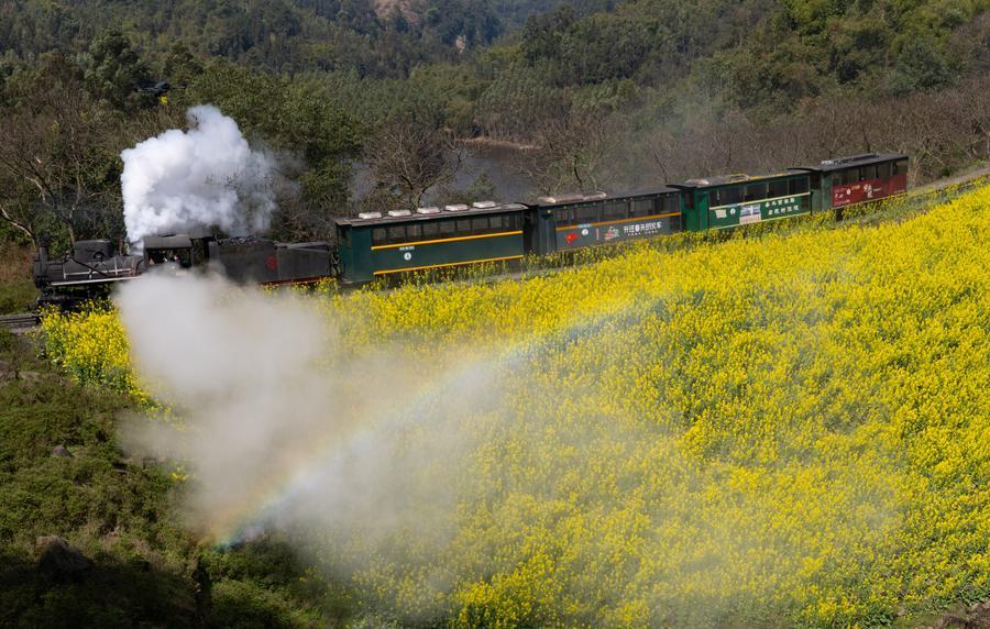 各地努力把美麗生態(tài)“顏值”轉(zhuǎn)化為經(jīng)濟(jì)“產(chǎn)值”。在樂山市犍為縣,“開往春天的小火車”吐著白色蒸汽穿行油菜花海,載著游人緩緩行駛;綿陽市北川羌族自治縣永昌鎮(zhèn)高安村推出“馬上賞花”沉浸式新玩法,開園首日吸引游客超萬人次。