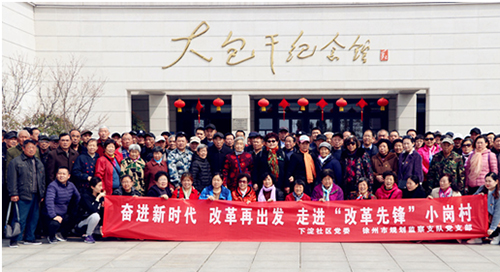 2019323日,徐州下淀社區(qū)黨委與黨建共建單位、徐州市規(guī)劃監(jiān)察支隊黨支部共200名黨員共同走進(jìn)中國“改革先鋒”小崗村。這是下淀社區(qū)黨委利用20182019年度黨員冬訓(xùn)與區(qū)域化黨建活動日,參觀小崗村大包干紀(jì)念館和沈浩陳列館,學(xué)習(xí)沈浩同志無私奉獻(xiàn)發(fā)展小崗村的先進(jìn)事跡和小崗村人民敢為天下先改革創(chuàng)新精神。
