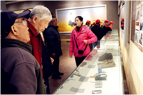 在小崗村的大包干紀(jì)念館,大家聽取了導(dǎo)游的介紹,仔細(xì)觀看了“抉擇”、“追夢”、“關(guān)愛”三個層區(qū)圖片以及十八顆紅手印。