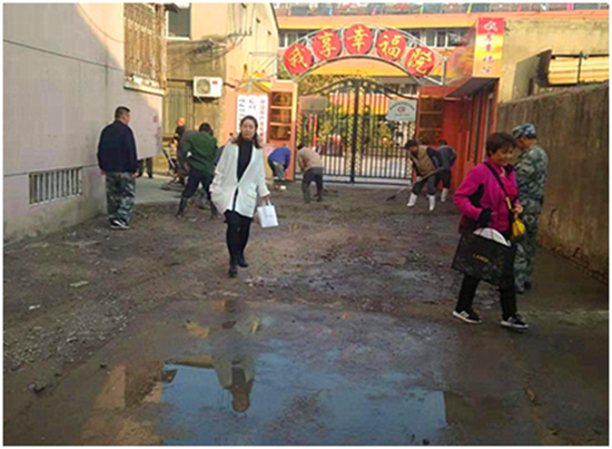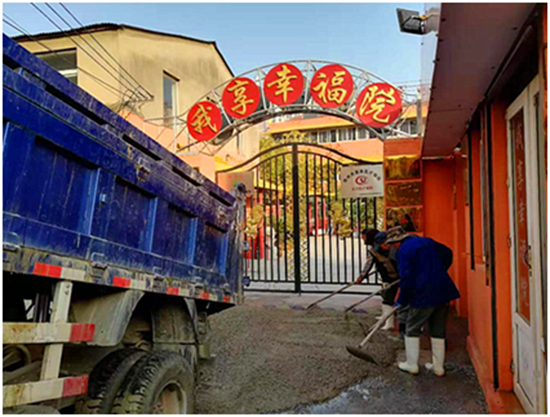 群眾利益無(wú)小事。接到反映后,社區(qū)黨委立即開(kāi)會(huì)研究并組織工作人員和志愿者到我享幸福院整治路面。社區(qū)副主任曹桂喜、胡振東、吳建啟等一方面挨家知會(huì)附近居民即將修繕道路的消息,讓大家盡可能的繞過(guò)修繕道路區(qū)域,另一方面,社區(qū)志愿者和突擊隊(duì)加快速度對(duì)路面進(jìn)行修整。經(jīng)過(guò)緊張的修正、鋪設(shè)、路面提漿,很快,一條平整干凈的馬路讓“我享幸福院”的老人們真正享受到了出行的“幸福”,再也不為出不了大門(mén)而苦惱了。