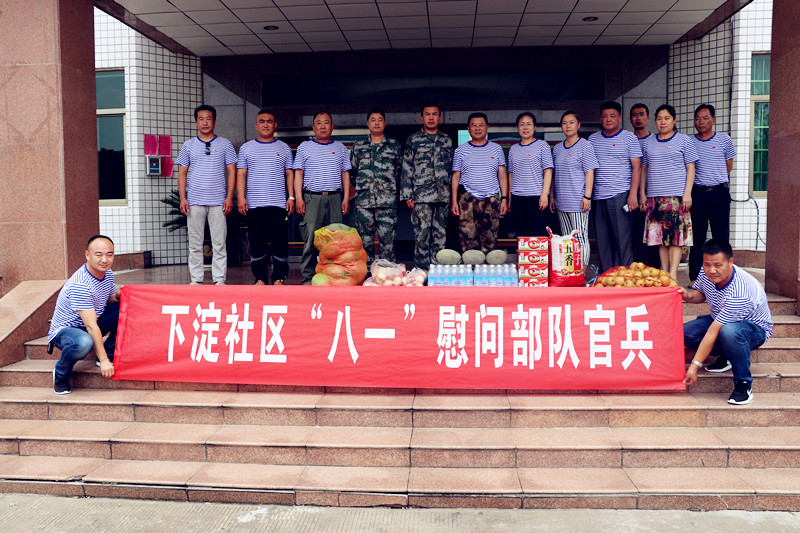 為紀(jì)念中國人民解放軍建軍91周年,繼續(xù)做好新形勢下社區(qū)的雙擁工作,進一步促進軍民團結(jié),731日上午,徐州豐財街道辦事處劉馨陽副主任,民政郭科長、下淀社區(qū)黨委書記付化友帶領(lǐng)社區(qū)兩委班子成員,帶著哈密瓜、蘋果、水蜜桃、鹽汽水等夏季防暑降溫食品,先后走訪慰問了徐州楊莊消防中隊和駐地倉庫部隊官兵。