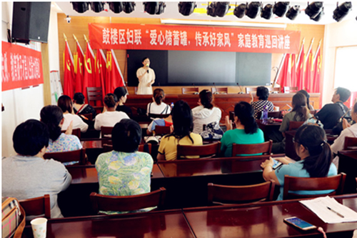 8月15日下午,由鼓樓區(qū)婦聯(lián)組織的“愛心儲(chǔ)蓄罐,傳承好家風(fēng)”家庭教育巡回講座在下淀社區(qū)四樓會(huì)議室舉行。徐州市鼓樓區(qū)婦聯(lián)副主席馬群、豐財(cái)街道辦事處婦聯(lián)主席蔡乃蓉等區(qū)轄各街道社區(qū)分管專職干部及社區(qū)年輕父母,志愿者,工作人員60余人參加。