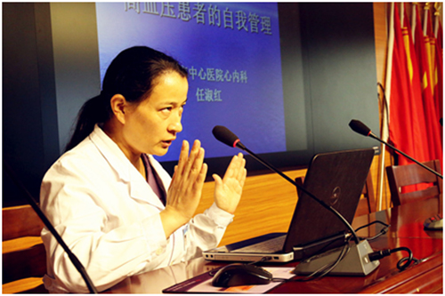 主任醫(yī)師、醫(yī)學(xué)碩士、醫(yī)療組長、全國轉(zhuǎn)化醫(yī)學(xué)會委員任淑紅宣講了《高血壓患者的自我管理》。隨后,科普活動分四個區(qū)域進行了專家咨詢區(qū)、血壓測量技術(shù)指導(dǎo)區(qū)、高血壓模擬并發(fā)癥模擬區(qū)、心肺復(fù)蘇技能演示與指導(dǎo)。向大家傳播高血壓自我管理知識及正確測量血壓的技能,增強大家對高血壓疾病的認識,更好地做好早期預(yù)防及血壓控制。